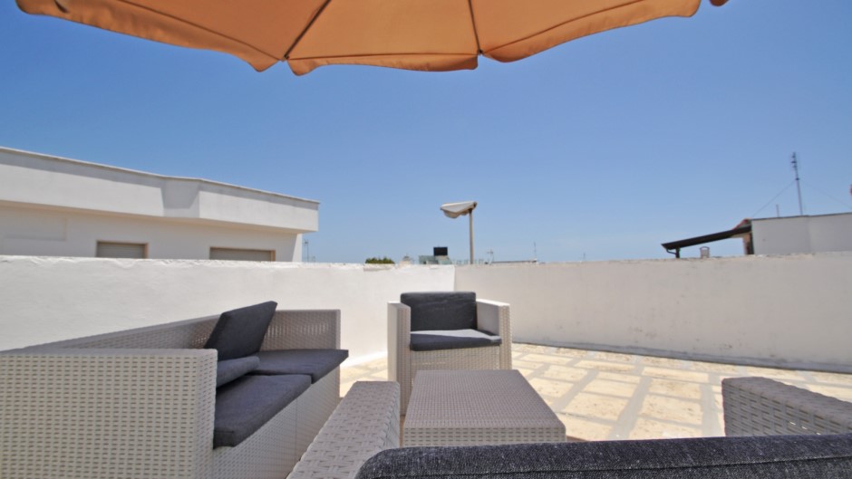 L'appartamento si trova al primo piano ed è dotato di un terrazzo attrezzato con comodi mobili da giardino e vista mare a 360 gradi. La zona giorno è composta da una ampia sala pranzo, mentre la zona notte è composta da tre camere da letto di cui due matrimoniali ed una singola, tutte climatizzate per garantire il massimo del comfort. Il bagno è dotato di doccia e vi è anche una lavatrice a disposizione degli ospiti. WiFi Free