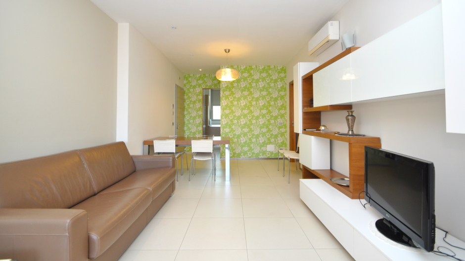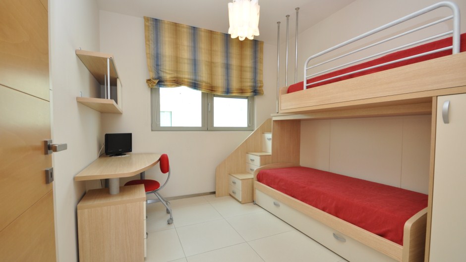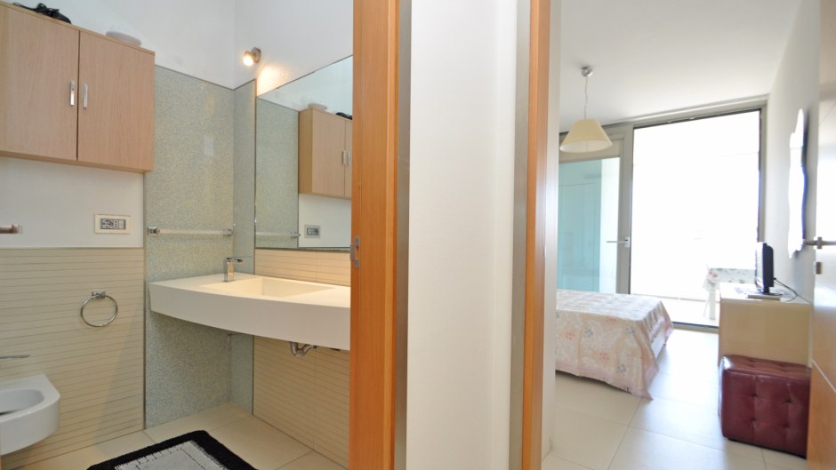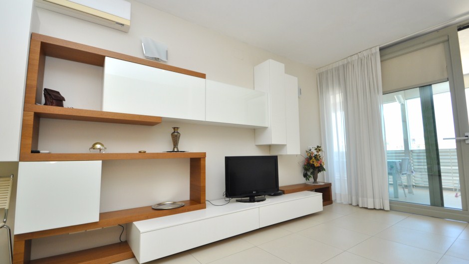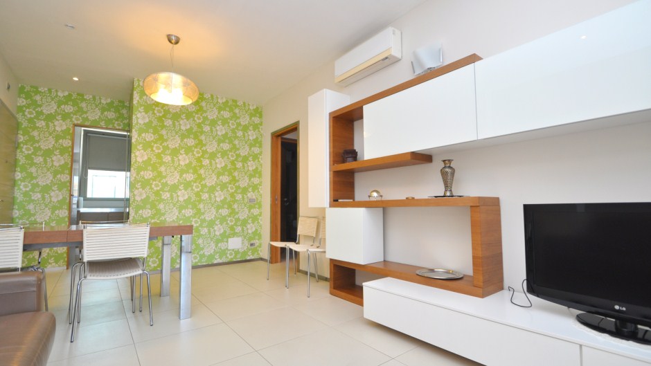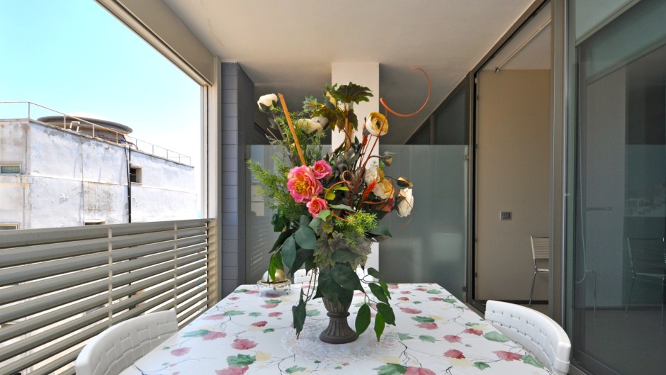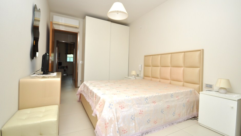 L'appartamento è composto da due camere da letto, una matrimoniale e una con tre letti singoli, una cucina completamente attrezzata, un ampio soggiorno con divano letto matrimoniale, un bagno e un terrazzo esterno con vista mare dove si può mangiare all'aperto. Inoltre, l'appartamento dispone di posto auto riservato, lavatrice, climatizzatore e connessione internet wifi gratuita.