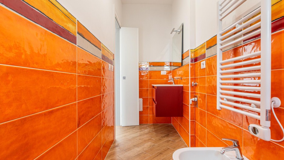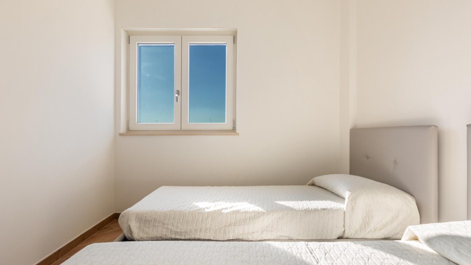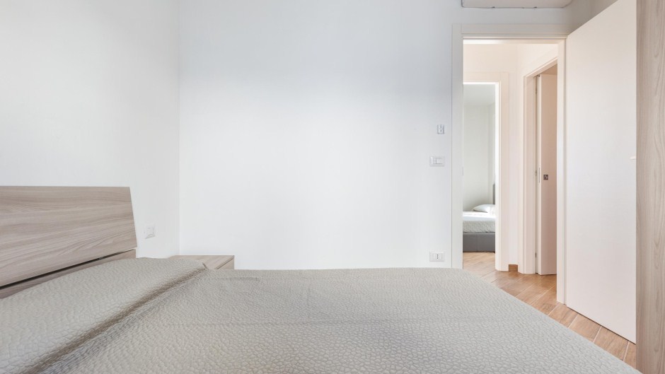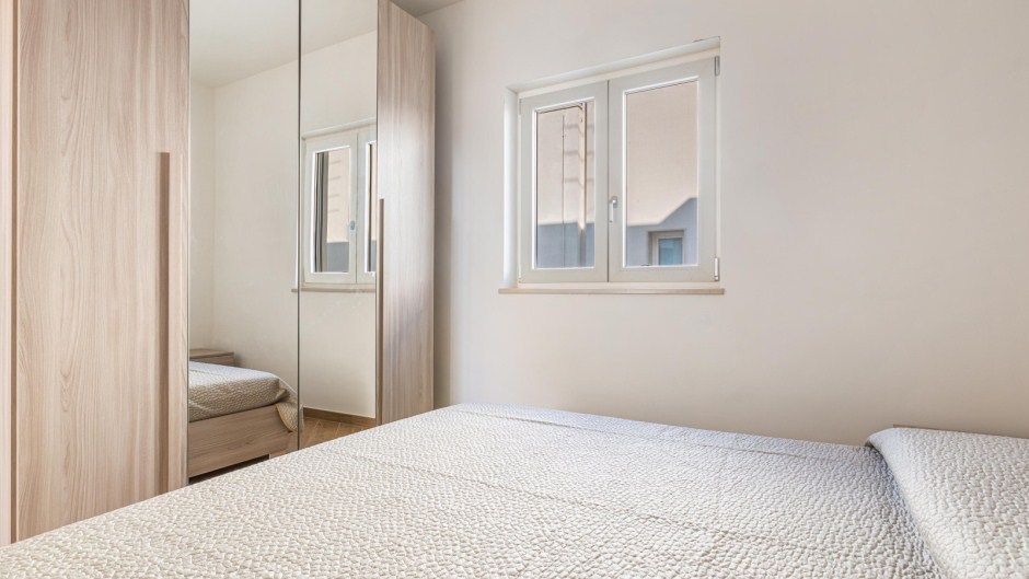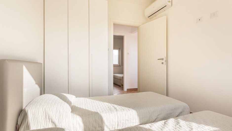 La zona notte è composta da una camera matrimoniale e una camera doppia, entrambe arredate con cura e fornite di ampi armadi per riporre comodamente i vostri effetti personali. Il bagno, dotato di doccia, completa la disposizione dell'appartamento.