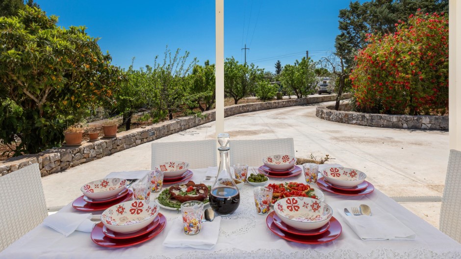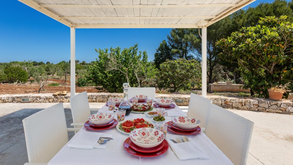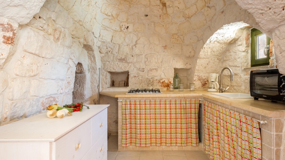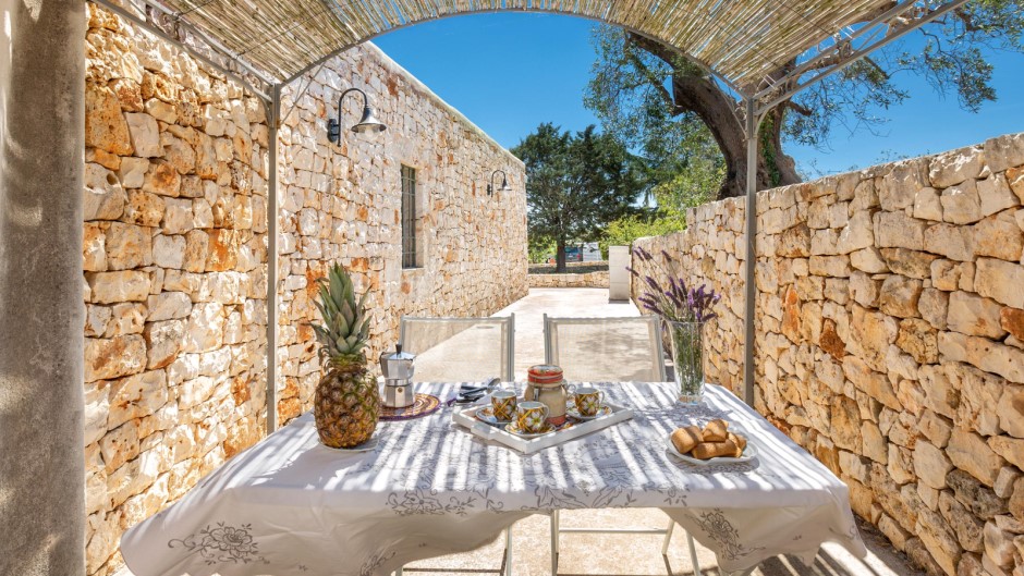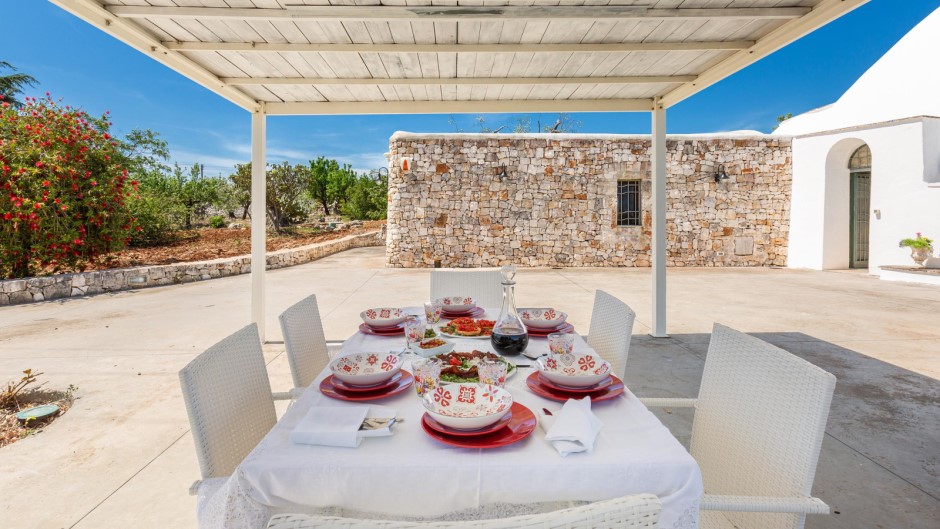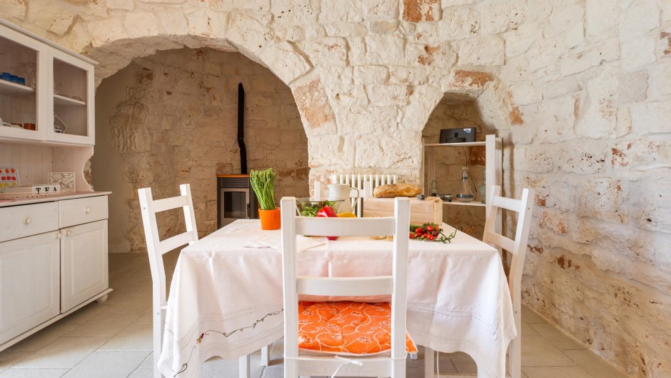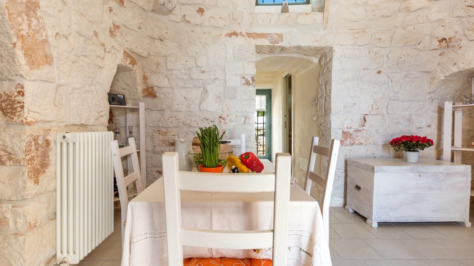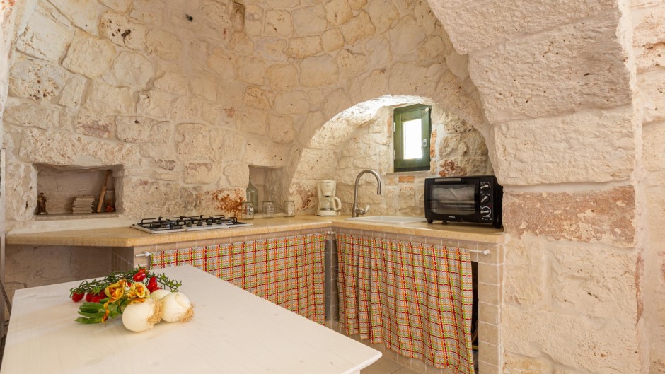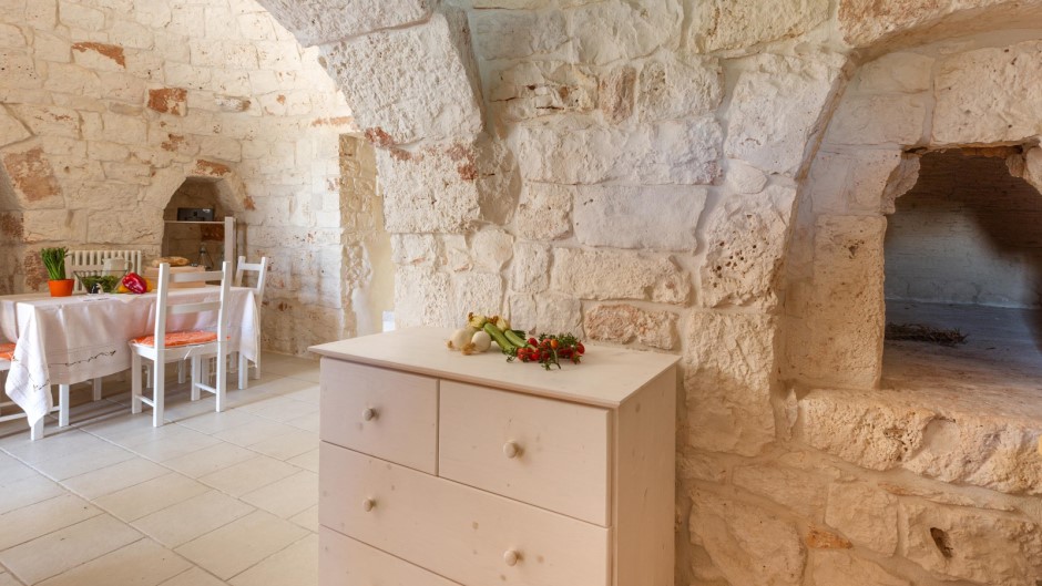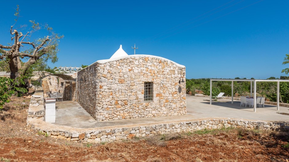 La villa può ospitare comodamente fino a 8 persone ed è composta da un trullo antico finemente ristrutturato e da una lamia. Gli interni sono ben attrezzati per soddisfare le esigenze degli ospiti, inclusi servizi come internet, lavatrice, barbecue, forno elettrico, macchina per il caffè, microonde, minibar, phon, asse e ferro da stiro, TV con decoder satellitare, zanzariere e parcheggio. Gli animali domestici sono ammessi.