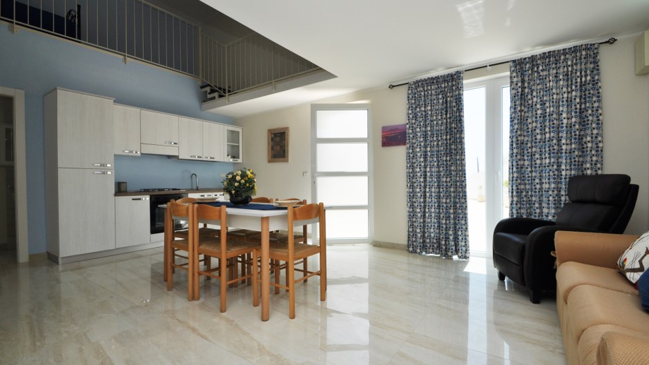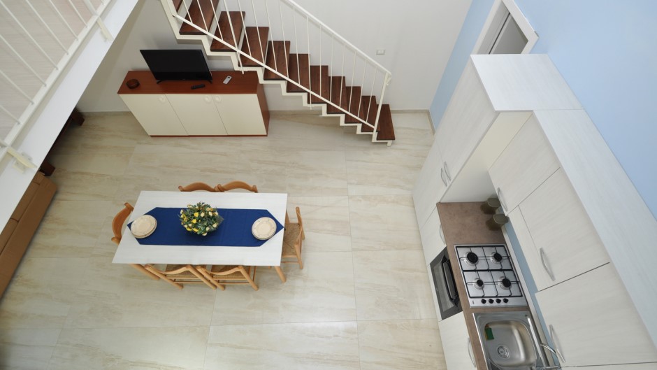 Le suite sono state arredate con cura nei minimi dettagli, pensate per offrire il massimo comfort agli ospiti. Ogni unità è costituita da un ampio ambiente unico con soppalco, che può ospitare fino a 5 persone in modo intelligente. Al piano terra, gli ospiti troveranno una spaziosa zona giorno con una cucina completamente attrezzata, un bagno e un comodo divano letto matrimoniale. Salendo al soppalco, gli ospiti troveranno una camera da letto accogliente e romantica, con un letto matrimoniale e un posto letto singolo aggiuntivo. Connessione internet Wi Fi.