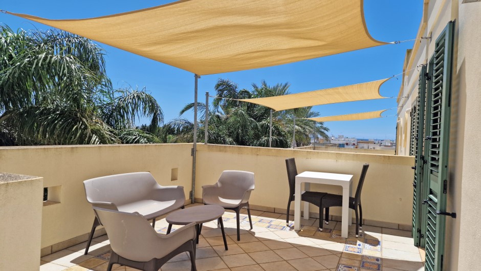 Il solarium è la perla del residence, accogliente e dotato di una graziosa piscina, offrendo l'ambiente perfetto per bagni di sole rilassanti e momenti di pura serenità.