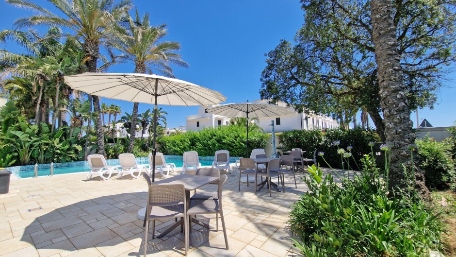 Il residence è immerso nel verde, tra palme, siepi ed oleandri, offrendo un ambiente tranquillo e rilassante.
