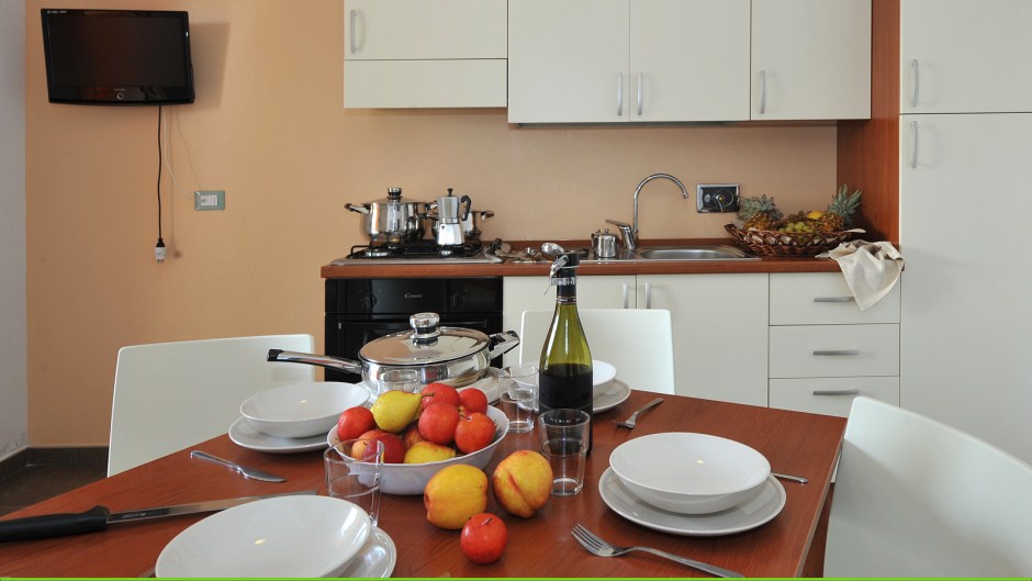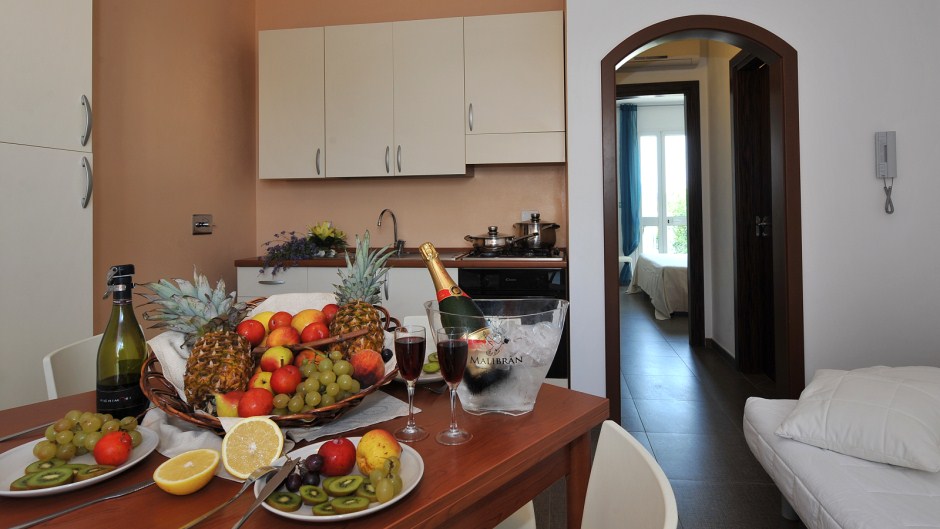 Il residence dispone di diverse soluzioni abitative, tra cui monolocali, bilocali, trilocali, camere matrimoniali e camere quadruple, tutte arredate con stile e praticità.