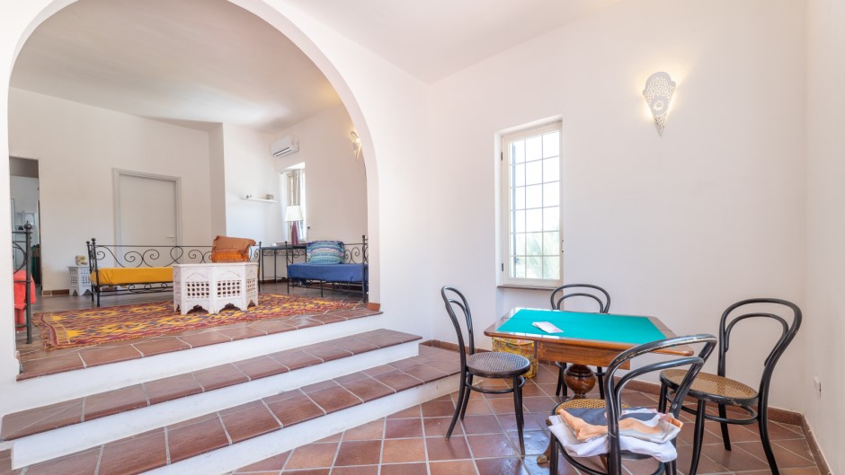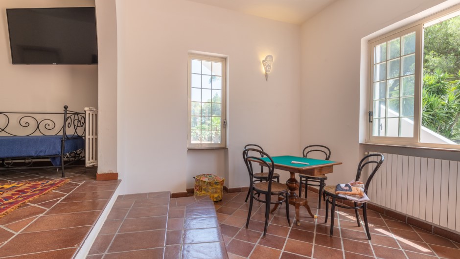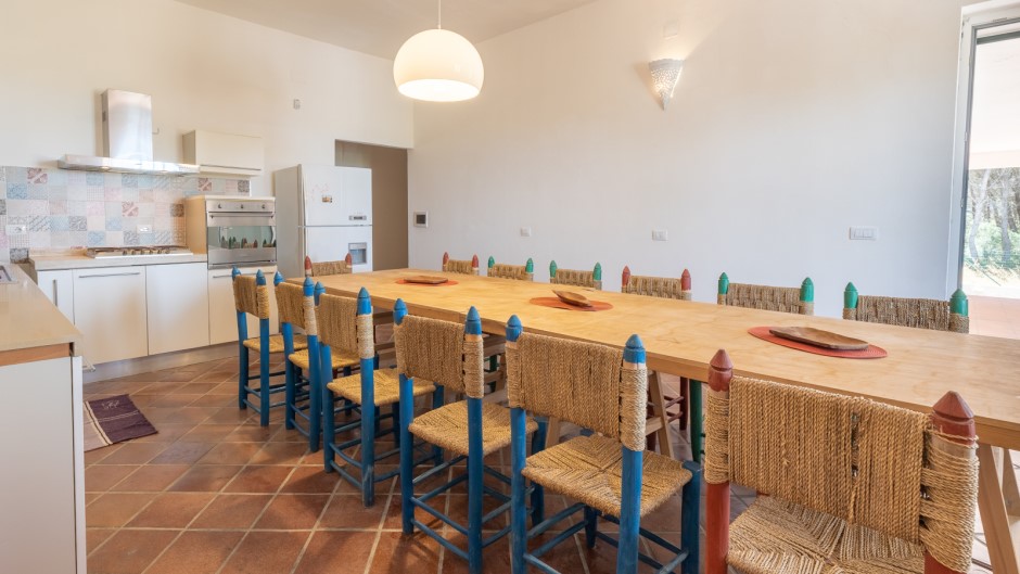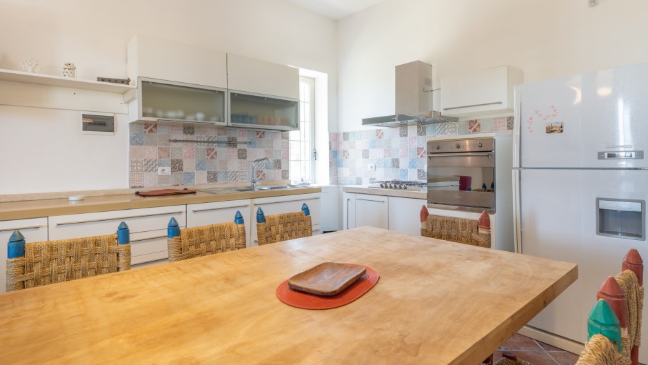 La villa principale, di 180 metri quadrati, è composta da quattro camere da letto matrimoniali, di cui 3 con un letto singolo aggiunto, e una grande sala da pranzo con un tavolo perfetto per gustose cene in compagnia. La cucina completamente attrezzata vi permetterà di preparare i vostri piatti preferiti, mentre le doppie sale living offrono spaziose aree di relax. All'esterno, potrete godere di un ampio spazio attrezzato con tavolo e sedie per cenare all'aperto, una doccia esterna per rinfrescarvi dopo una giornata di mare e un vano lavanderia esterno in comune con le due depandances indipendenti.