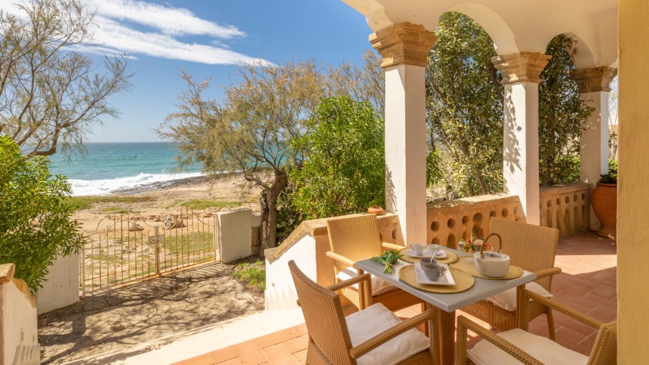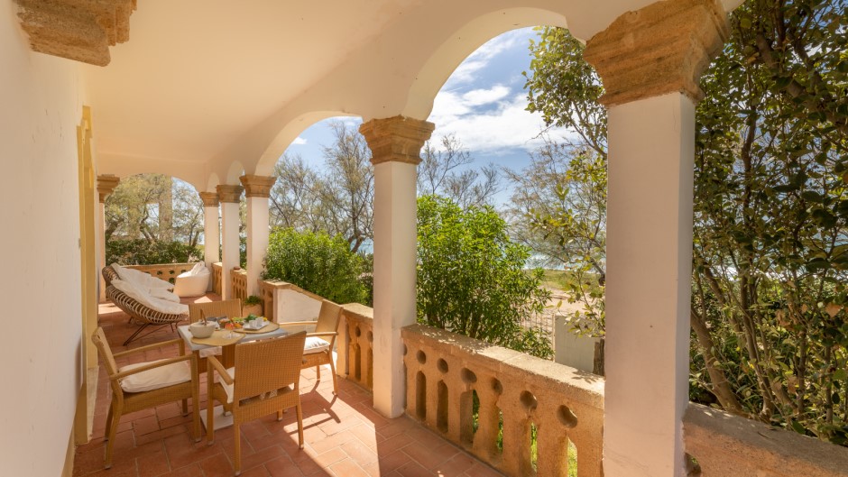 La veranda è attrezzata con un tavolo ideale per le colazioni all’aperto e diverse poltrone disposte per sempre per poter ammirare e ascoltare il mare da questa posizione invidiabile. Nel giardino invece abbiamo un ulteriore angolo attrezzato con tavolo da esterno, ombrellone e barbecue per pranzi e cene all’aperto.