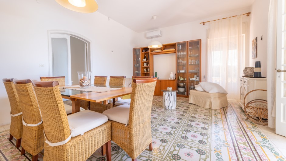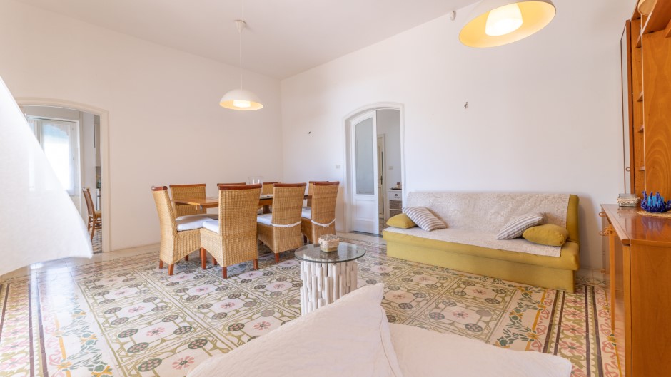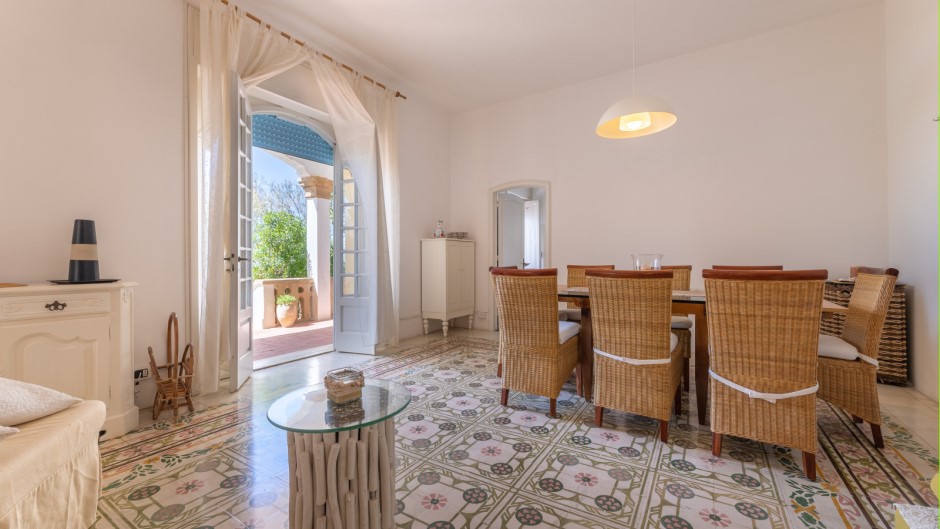 Questa villa possiede tantissimi elementi caratteristici e tipici delle più belle residenze estive salentine, i bellissimi pavimenti d’epoca perfettamente tenuti che vivacizzano gli ambienti, la vegetazione mediterranea, la vicinanza al mare.