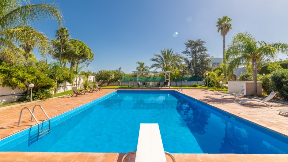 La Villa Castellana è una meravigliosa proprietà con grandi spazi verdi e una grande piscina che vi permetterà di godere a pieno delle vostre vacanze estive in Puglia. La villa è disposta su due piani e offre una zona notte con quattro camere da letto matrimoniali/doppie climatizzate e balconi che si affacciano sul bellissimo giardino. Inoltre, due delle camere possono ospitare un letto singolo aggiuntivo su richiesta. Ci sono anche due bagni dotati di box doccia e vasca.