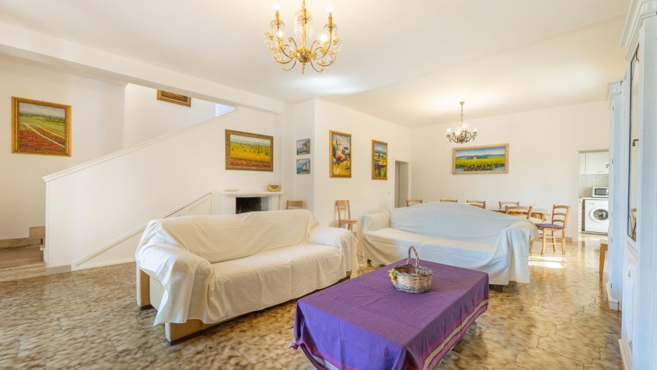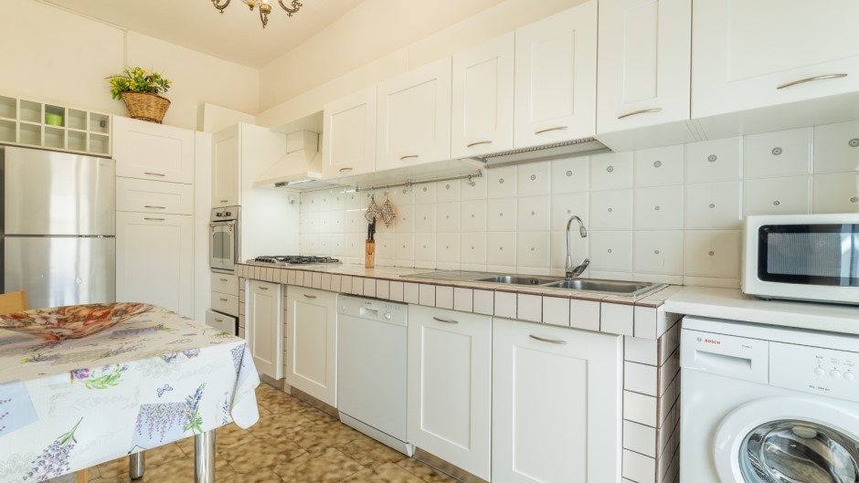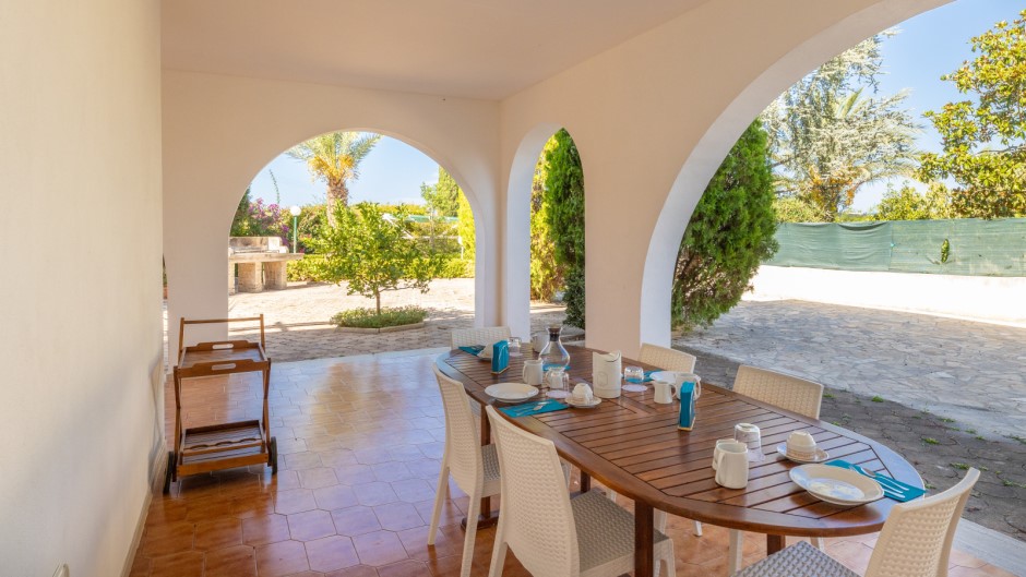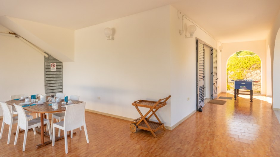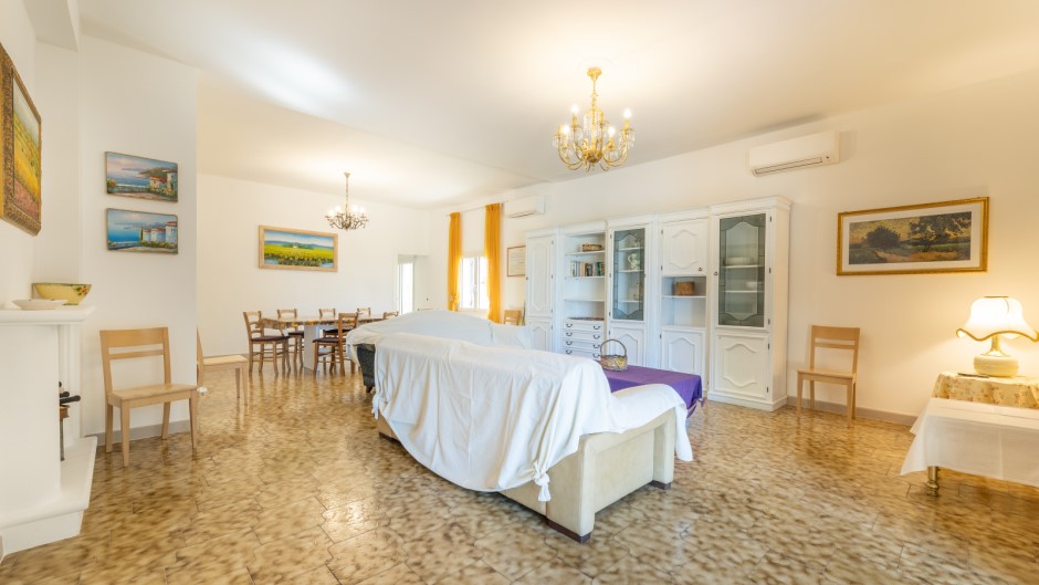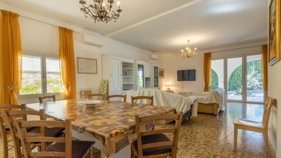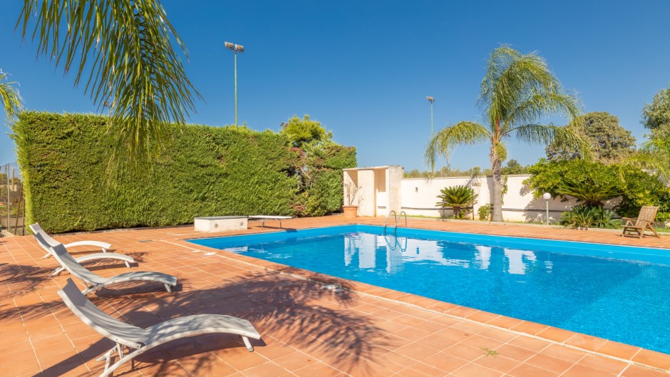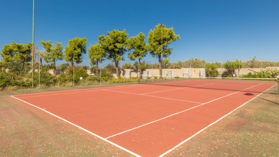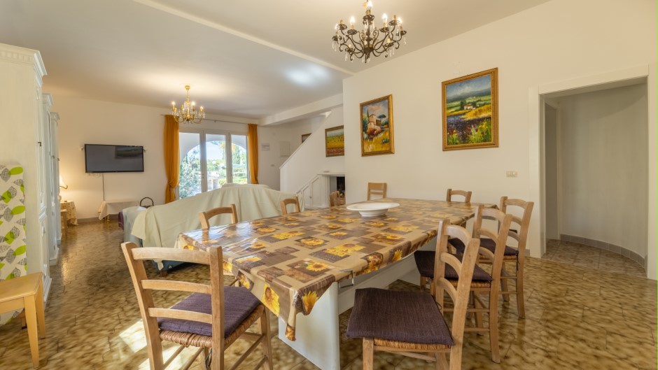 Al piano terra, potrete trovare un ampio soggiorno/sala da pranzo con camino, cucinotto e ampie verande attrezzate con mobili da giardino, perfette per pranzare all'aperto. La villa è circondata da un bellissimo giardino che ospita una grande piscina (16x8), docce esterne, un gazebo e un campo da tennis regolamentare. Inoltre, c'è un parcheggio auto ombreggiato, una lavatrice, una lavastoviglie, un barbecue e finestre dotate di zanzariere. Potrete inoltre rimanere connessi grazie alla connessione Internet WI-Fi disponibile in tutta la villa.