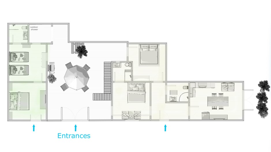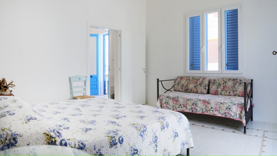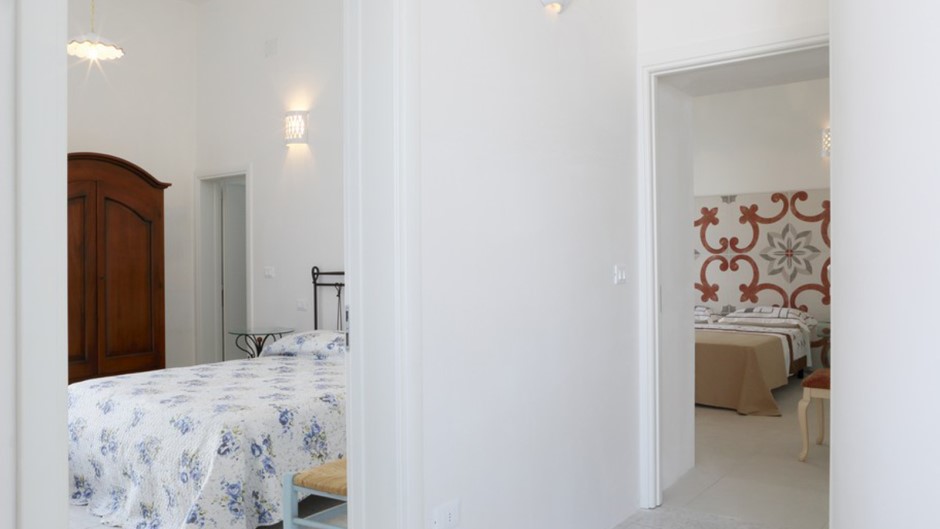 La villa può ospitare comodamente fino a 9 persone, con 2 camere matrimoniali, 1 camera doppia e 1 camera tripla (matrimoniale con un letto singolo). Tutte le camere sono arredate con gusto e dotate di comodi letti, armadi e cassettiere.