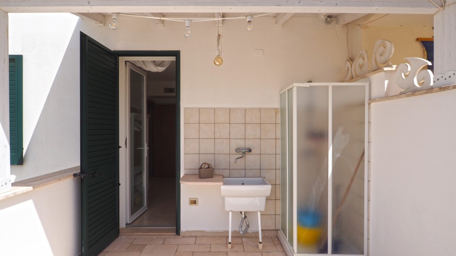 Per completare il quadro, la villa è dotata di una lavatrice a disposizione degli ospiti al costo di € 0,50 per lavaggio, ma è possibile usufruire di un lavaggio gratuito al giorno. E' presente anche una doccia esterna.