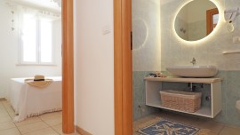 All'interno della villa, gli ospiti troveranno due camere da letto confortevoli e accoglienti. La camera matrimoniale è arredata con gusto e dispone di un letto matrimoniale, mentre la camera quadrupla può ospitare fino a quattro persone ed è l'ideale per le famiglie con bambini. Il bagno è dotato di una comoda doccia, perfetta per rinfrescarsi dopo una giornata di sole.