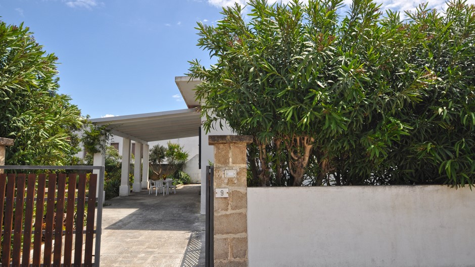 Una vacanza con la macchia mediterranea in giardino, e a pochi passi dal mare. Si può, se il Salento lo guardi da questa villetta immersa nel verde. Un patio esterno in legno, attrezzato per le colazioni, i pranzi e le cene all’aperto, impreziosisce un giardino ricco di fiori di ogni colore, piante, alberi.