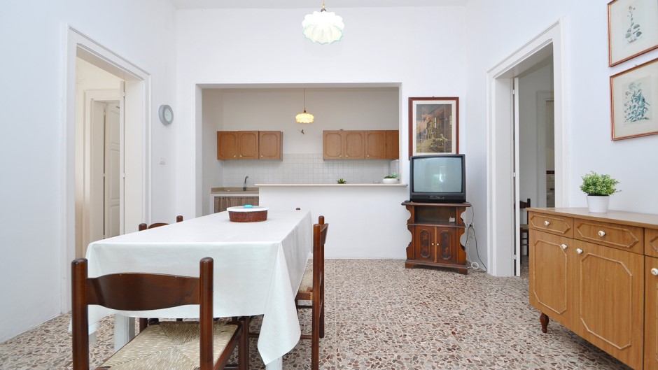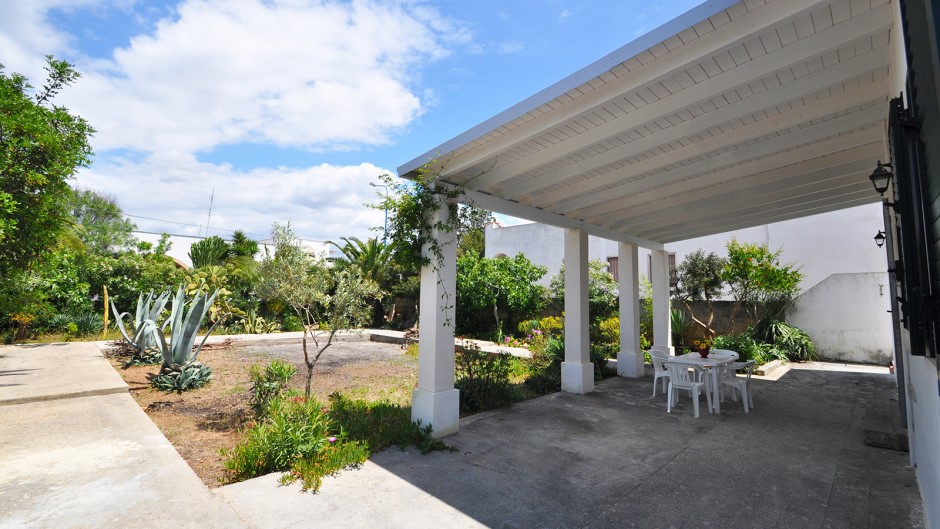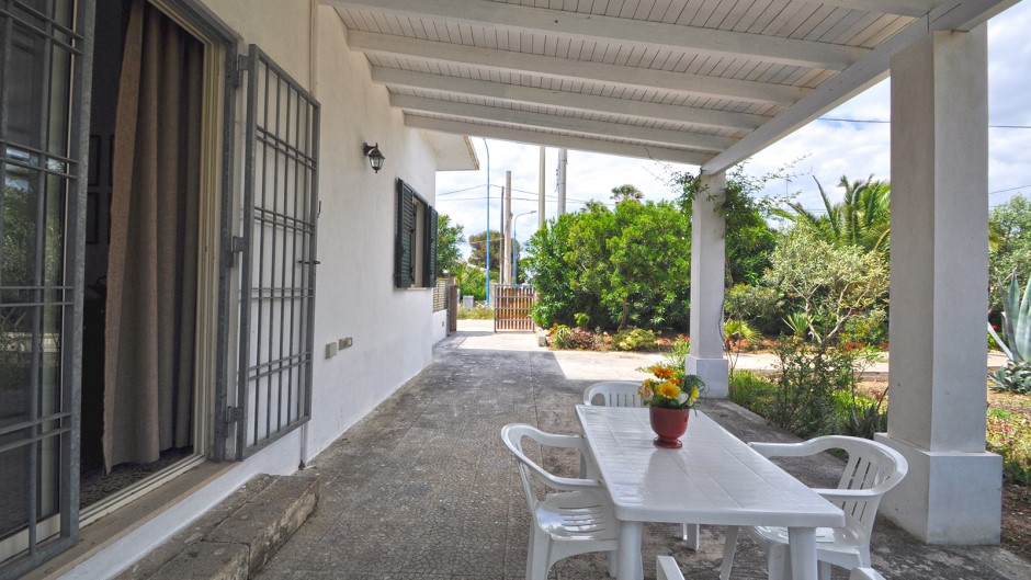 Villetta a soli 70 metri dal mare. La casa gode di un bellissimo giardino con palme, oleandri e piante grasse ed una graziosa veranda in legno attrezzata con mobili da giardino per pranzi e cene all'aperto. L'interno è composto da 2 camere da letto (di cui una climatizzata) con bagno, una tripla e una matrimoniale, sala pranzo con angolo cottura. Servizi: doccia esterna e lavatrice.