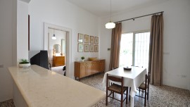 Villetta a soli 70 metri dal mare. La casa gode di un bellissimo giardino con palme, oleandri e piante grasse ed una graziosa veranda in legno attrezzata con mobili da giardino per pranzi e cene all'aperto. L'interno è composto da 2 camere da letto (di cui una climatizzata) con bagno, una tripla e una matrimoniale, sala pranzo con angolo cottura. Servizi: doccia esterna e lavatrice.