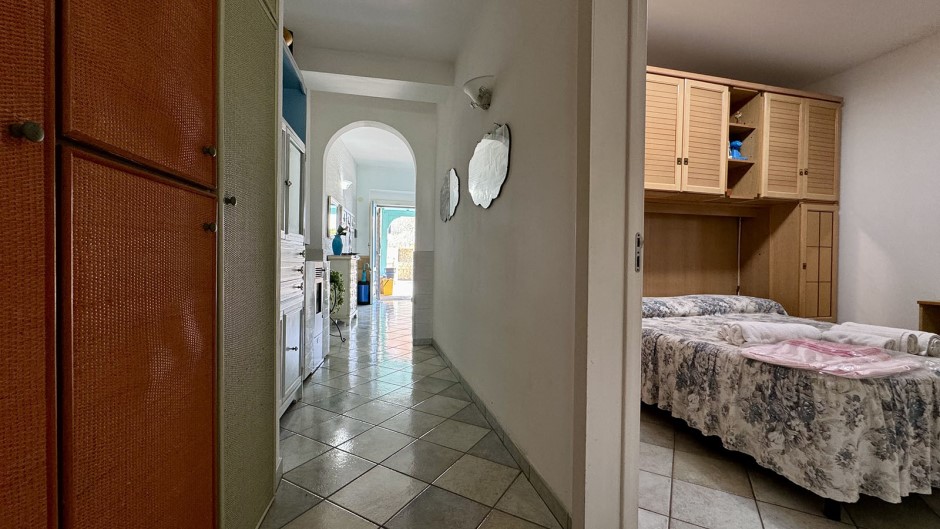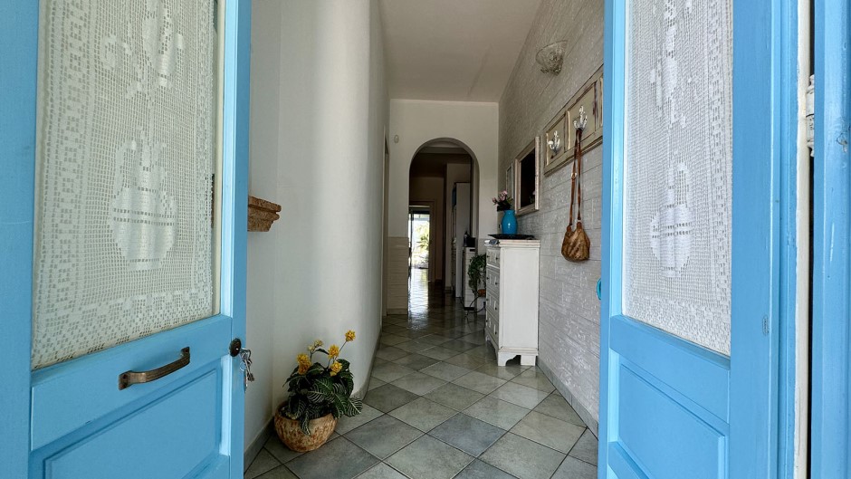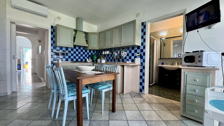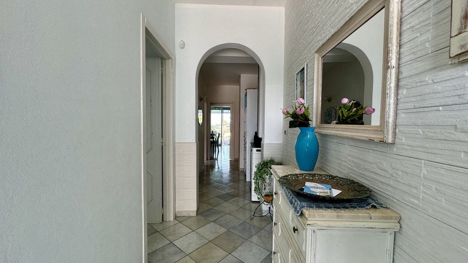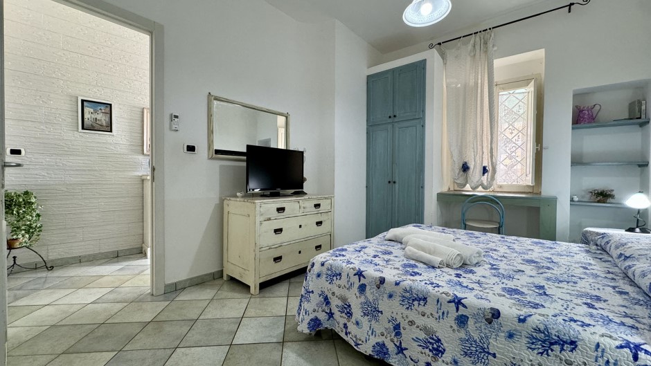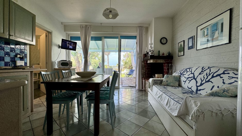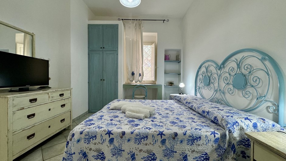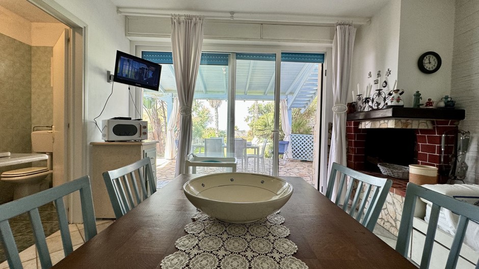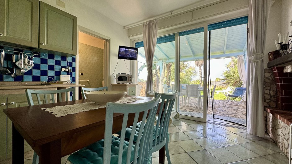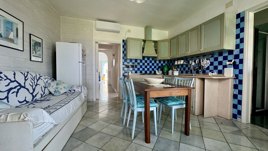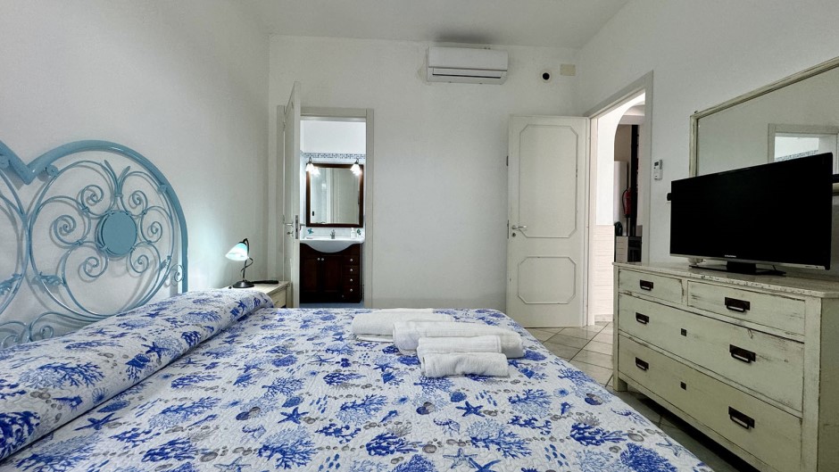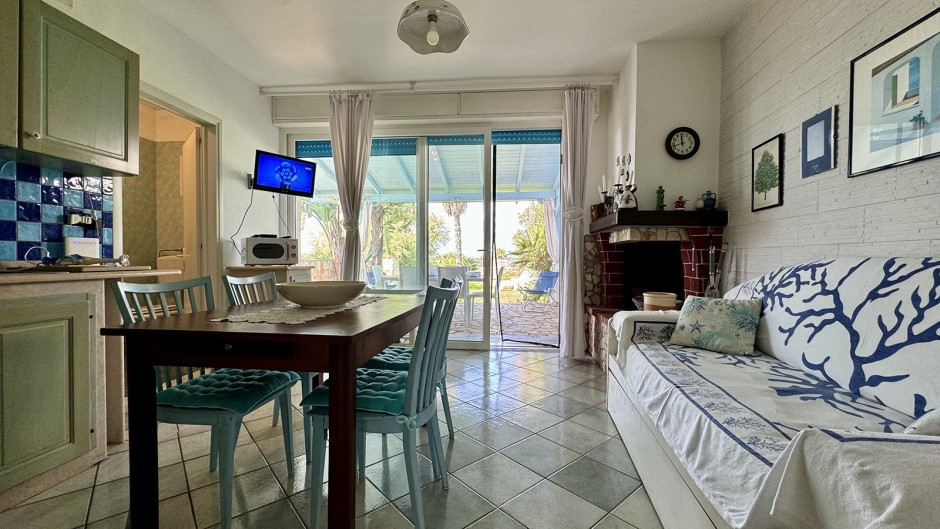 L'interno della Villetta è composto da due camere da letto matrimoniali con bagno in camera e soggiorno con divano letto e cucina. Le camere sono arredate con gusto e offrono una tranquilla oasi di riposo dopo una giornata di sole e mare. Dispone di tre bagni eleganti e moderni, garantendo il massimo del comfort per tutti gli ospiti. Gli ambienti sono climatizzati, assicurando una temperatura piacevole anche durante le giornate più calde dell'estate.